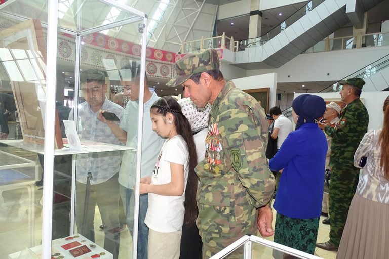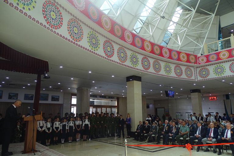 Дар ифтитоҳи расмии намоиш директори Осорхонаи миллӣ Иброҳимзода Зафаршо, намояндаи Вазорати мудофиаи Ҷумҳурии Тоҷикистон палковник Ҳотамиён Абдурашид, Сафири фавқулодда ва мухтори Россия дар Тоҷикистон Семён Вячеславович Григорев, Сафири фавқулодда ва мухтори Озорбойҷон дар Тоҷикистон Алимирзамин Аскаров, Сафири фавқулодда ва мухтори Беларус дар Тоҷикистон Денисенко Виктор Александрович, котиби масъули Шурои собиқадорони ҷангу меҳнати Ҷумҳурии Тоҷикистон Элмурод Турсунов, раиси Шурои собиқадорони ҷангу меҳнати шаҳри Душанбе Назаров Абдуҳамид Узоқович, истиқоматкунандаи шаҳри Истаравшан Бердиев Зафар – фарзанди иштирокчии Ҷанги Бузурги Ватанӣ Бердиев Дадаҷон иштирок ва суханронӣ намуданд.