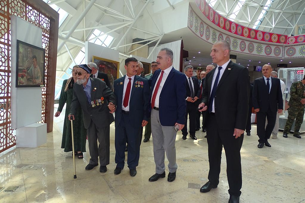 Дар ифтитоҳи расмии намоиш директори Осорхонаи миллӣ Иброҳимзода Зафаршо, намояндаи Вазорати мудофиаи Ҷумҳурии Тоҷикистон палковник Ҳотамиён Абдурашид, Сафири фавқулодда ва мухтори Россия дар Тоҷикистон Семён Вячеславович Григорев, Сафири фавқулодда ва мухтори Озорбойҷон дар Тоҷикистон Алимирзамин Аскаров, Сафири фавқулодда ва мухтори Беларус дар Тоҷикистон Денисенко Виктор Александрович, котиби масъули Шурои собиқадорони ҷангу меҳнати Ҷумҳурии Тоҷикистон Элмурод Турсунов, раиси Шурои собиқадорони ҷангу меҳнати шаҳри Душанбе Назаров Абдуҳамид Узоқович, истиқоматкунандаи шаҳри Истаравшан Бердиев Зафар – фарзанди иштирокчии Ҷанги Бузурги Ватанӣ Бердиев Дадаҷон иштирок ва суханронӣ намуданд.