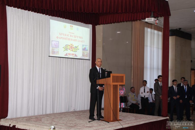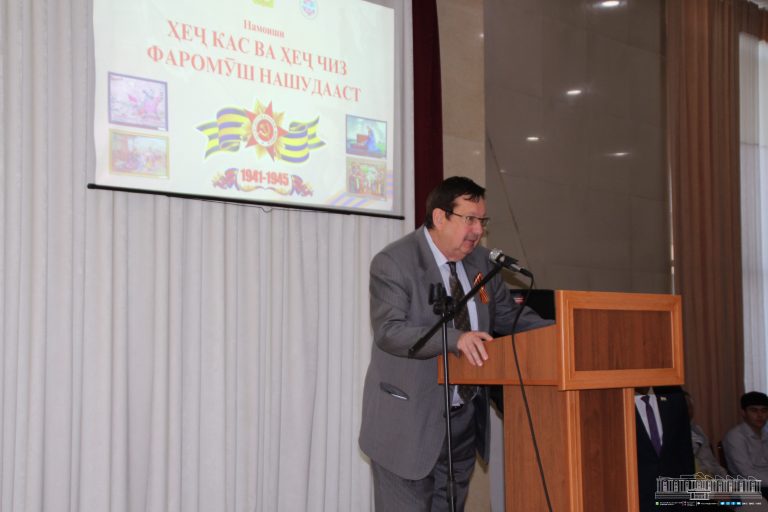 Дар ифтитоҳи намоиш намояндагони сафоратхонаҳои Федератсияи Россия, Ҷумҳурии Қирғизистон ва Ҷумҳурии Озорбойҷон дар Ҷумҳурии Тоҷикистон, Шӯрои собиқадорони ҷангу меҳнати шаҳру ноҳияҳои Душанбе, Турсунзода, Шаҳринав, донишҷӯёни Донишкадаи давлатии фарҳанг ва санъати Тоҷикистон ба номи М. Турсунзода, Донишгоҳи славянии Русияву Тоҷикистон, хонандагони муассисаҳои таҳсилоти миёнаи умумии №8 ва 53-и н. И. Сомонӣ иштирок ва суханронӣ намуданд.