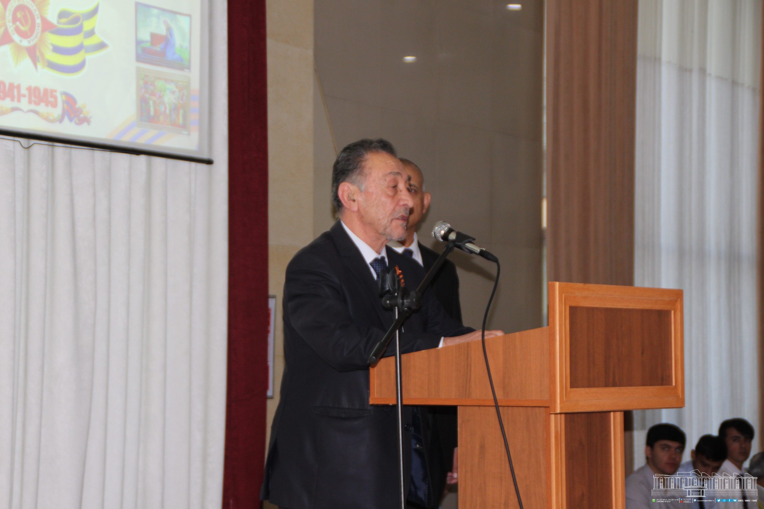 Дар як қисмати намоиш мусаввараҳои рассомон, ки ба мавзӯи ҶБВ бахшида шудаанд, пешниҳод гардидаанд. Аз ҷумла, офаридаҳои рассомон Хушвахтов Х.Д. “Модари Қаҳрамон Тӯйчӣ Эрҷигитов” (1926), Сапронов Б.Т. “Соли 1941” (1926), Бесперстов А.Т. “Бозгашти писар” (1923), Рахнаев И. Р. «Симои қаҳрамони ҷанг Неъмат Қарабоев», Белетский А. П. “Симои София Ниёзова”, Хушвахтов Л. Х. “9 май соли 1945”, Сангов Ю. Н. “Май 1945. Вохӯрии ғолибон” инъикосгари ин саҳифаи таърихи халқи тоҷик мебошанд.