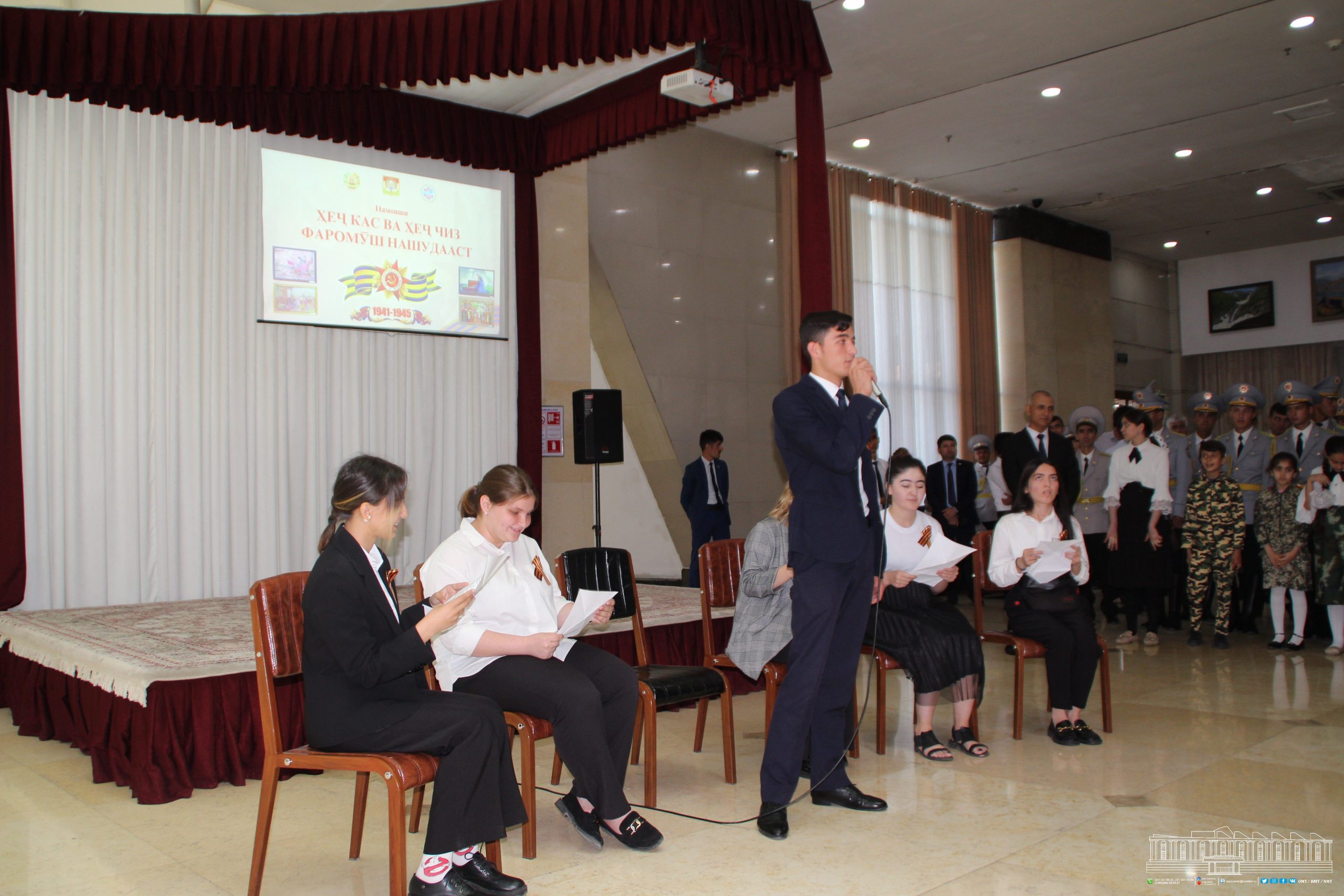 Дар намоиш хонандагони муассисаҳои таҳсилоти миёнаи умумӣ ва донишҷӯёни донишгоҳҳои ҳудуди пойтахт оид ба ҷонфидоиҳои фарзандони шуҷои миллат сурудҳо сароида, инчунин шеърҳои ватанпарастона қироат намуданд.