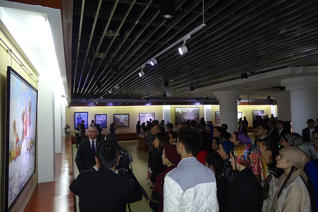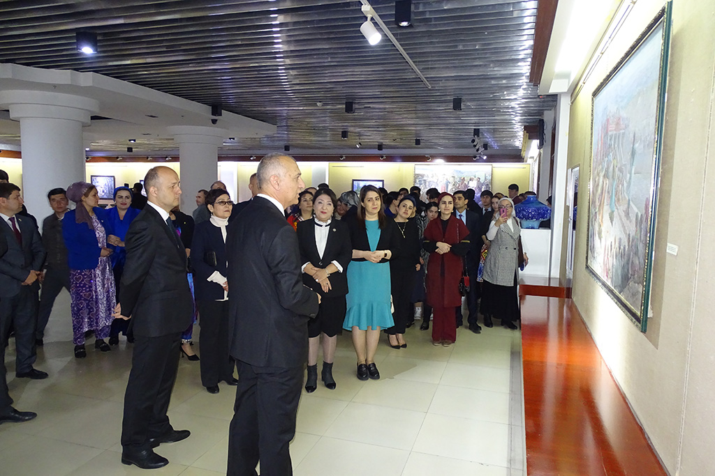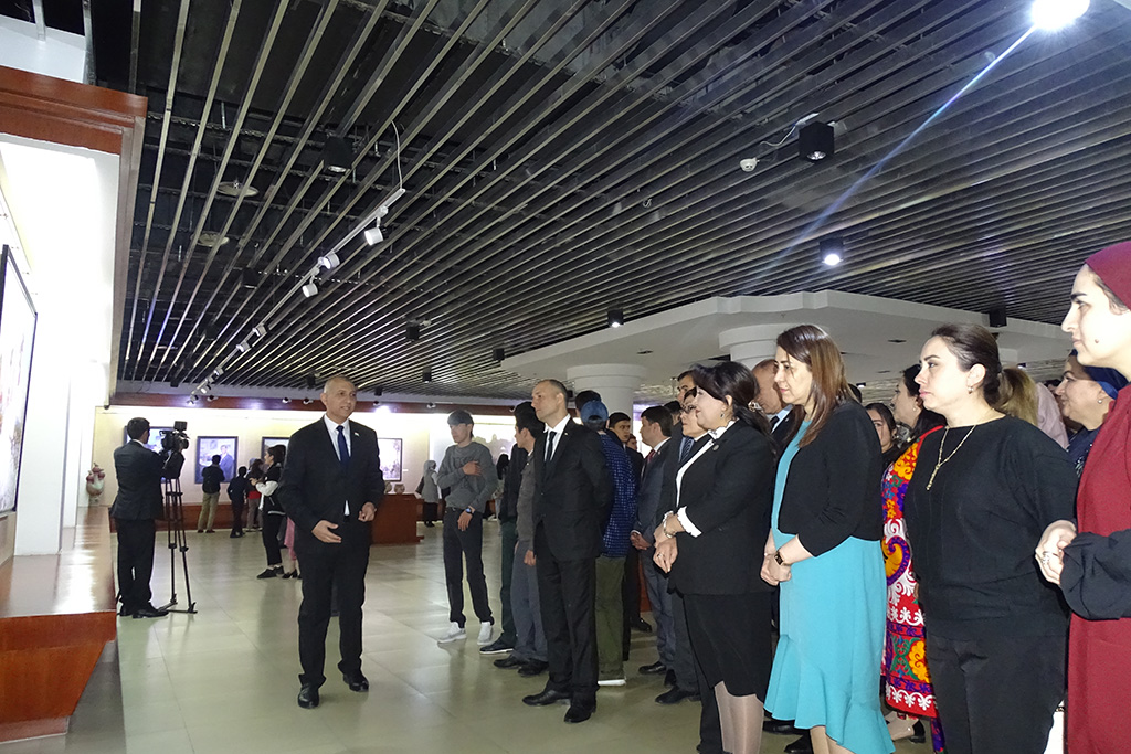 Дар ифтитоҳи расмии намоиш Мудири бахши Раёсати маориф, фарҳанг ва иттилооти Дастгоҳи иҷроияи Президенти Ҷумҳурии Тоҷикистон Фаридун Бобозода, Котиби Комиссияи миллии Ҷумҳурии Тоҷикистон оид ба корҳои ЮНЕСКО Зулфия Бурҳон, Раиси Иттифоқи рассомони Тоҷикистон Наргис Ҳамидова, устодону донишҷӯёни Донишкадаи давлатии санъати тасвирӣ ва дизайни Тоҷикистон, Донишкадаи давлатии фарҳанг ва санъати Тоҷикистон ба номи Мирзо Турсунзода, Донишгоҳи омӯзгории Тоҷикистон ба номи Садриддин Айнӣ ва Коллеҷи ҷумҳуриявии рассомии ба номи Мирзораҳмат Олимов иштирок ва суханронӣ намуданд.