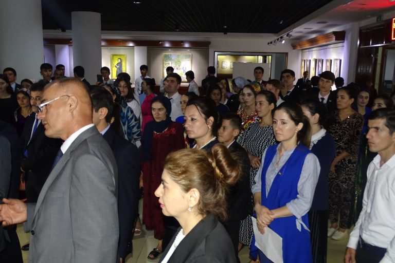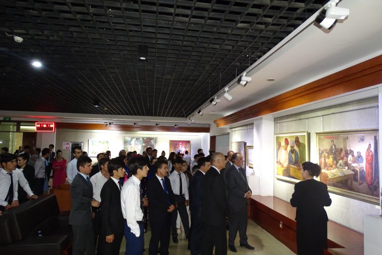 Дар ифтитоҳи намоиш роҳбарият ва кормандони Осорхонаи миллӣ, намояндагони Иттифоқи нависандагони Тоҷикистон, сарраёсати маорифи шаҳри Душанбе, утодону донишҷӯёни Донишгоҳи давлатии омӯзгории Тоҷикистон ба номи Садриддин Айнӣ, Донишгоҳи славянии Русияву Тоҷикистон ва воситаҳои ахбори омма иштирок намуданд.