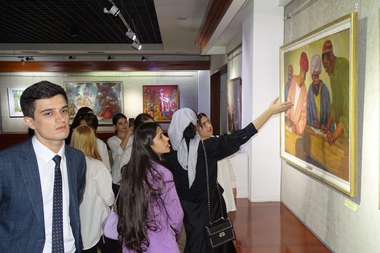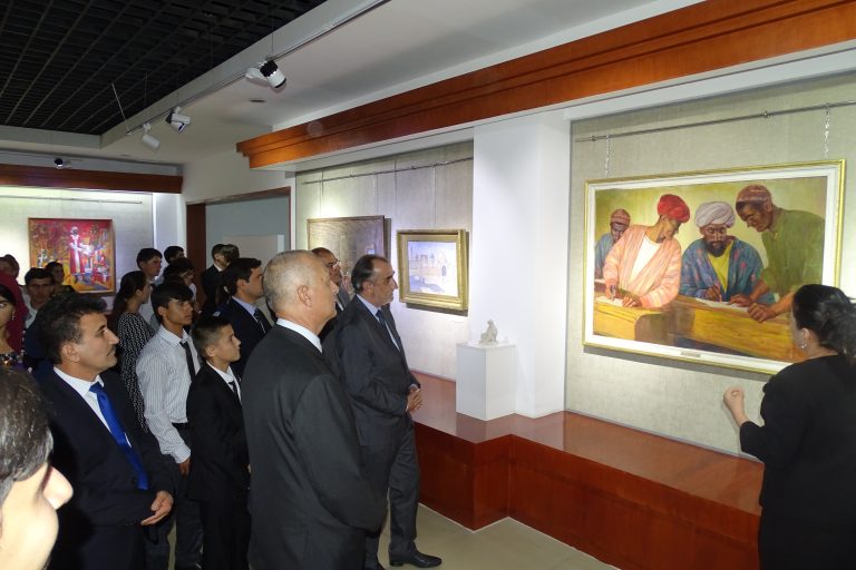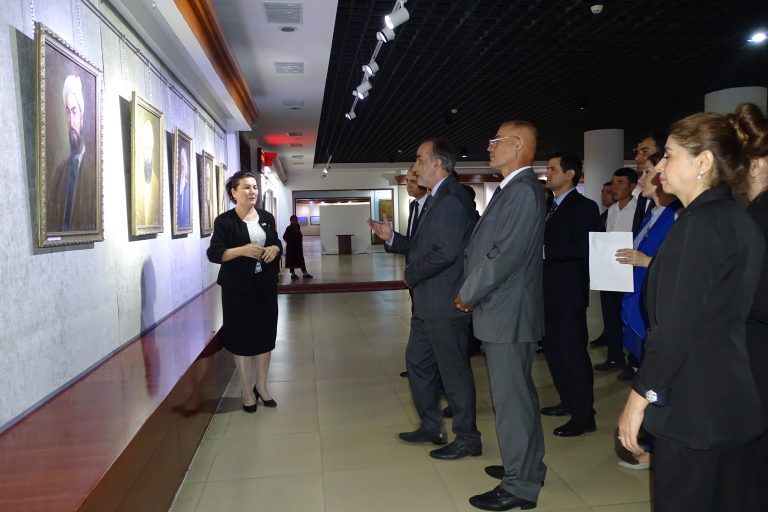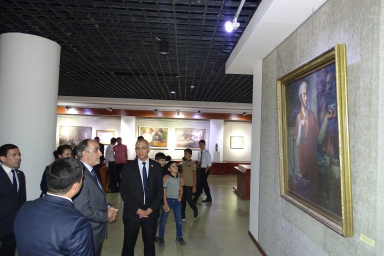 Вобаста ба ҳамин сана, дар намоишӣ омоданамуда аз фонди Осорхонаи миллӣ 30 адад экспонатҳои нодир ба монанди мусаввараву нимпайкараҳои рассомон ва пайкарасозон аз қабили офаридаҳои рассомон А. Ашӯров “Симои Муаллим” (соли 1955), Буртсев Е. Г. “Мактаби кўњна (соли 1934), Ҳабибулоев З. Н. “Гурӯҳи шоирон” (соли 1981), Лисиков И. Л. “Симои муаллимаи хизматнишондодаи ҶШС-и Тоҷикистон Маҳмудова М.” (соли 1977), Бенков П.П. “Ба мактаб” (соли 1946), Богдасаров Р. “Симои Абдураҳмони Ҷомӣ” (соли 1964), Боборикин В. М. “Маҳви бесаводӣ” (соли 1957), Хушвахтов Х. Д. “Имтиҳон” (соли 1962), Камелин А. Н. “Симои А. Дониш (соли 1964), Одинаев Б. “Ашъори шоирони бузург” (соли 1989), Жумағозин К. “Донишҷӯ” (соли 1979), Гунниус А. Ф. “Дӯстон” (соли 1956) ва дигар экспонатҳо пешниҳоди тамошобинон шудаанд.