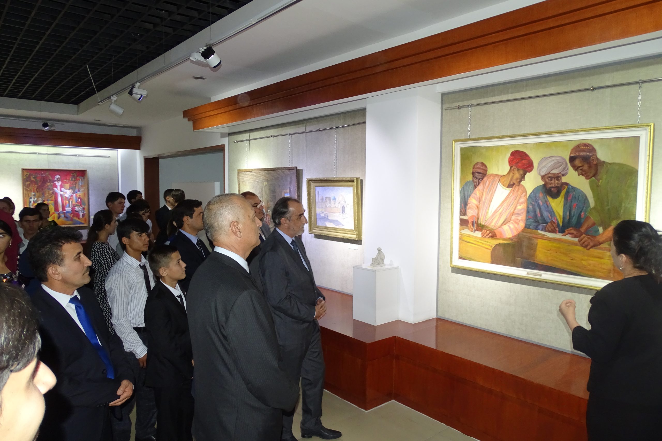 Дар ифтитоҳи намоиш роҳбарият ва кормандони Осорхонаи миллӣ, намояндагони Иттифоқи нависандагони Тоҷикистон, сарраёсати маорифи шаҳри Душанбе, утодону донишҷӯёни Донишгоҳи давлатии омӯзгории Тоҷикистон ба номи Садриддин Айнӣ, Донишгоҳи славянии Русияву Тоҷикистон ва воситаҳои ахбори омма иштирок намуданд.