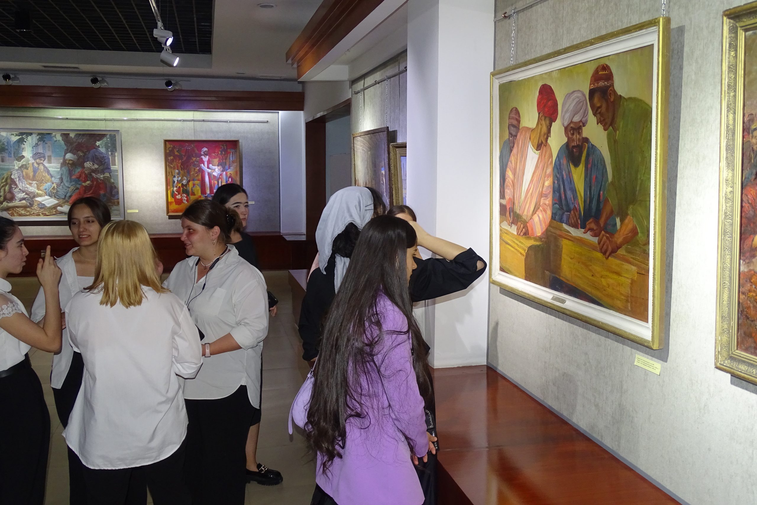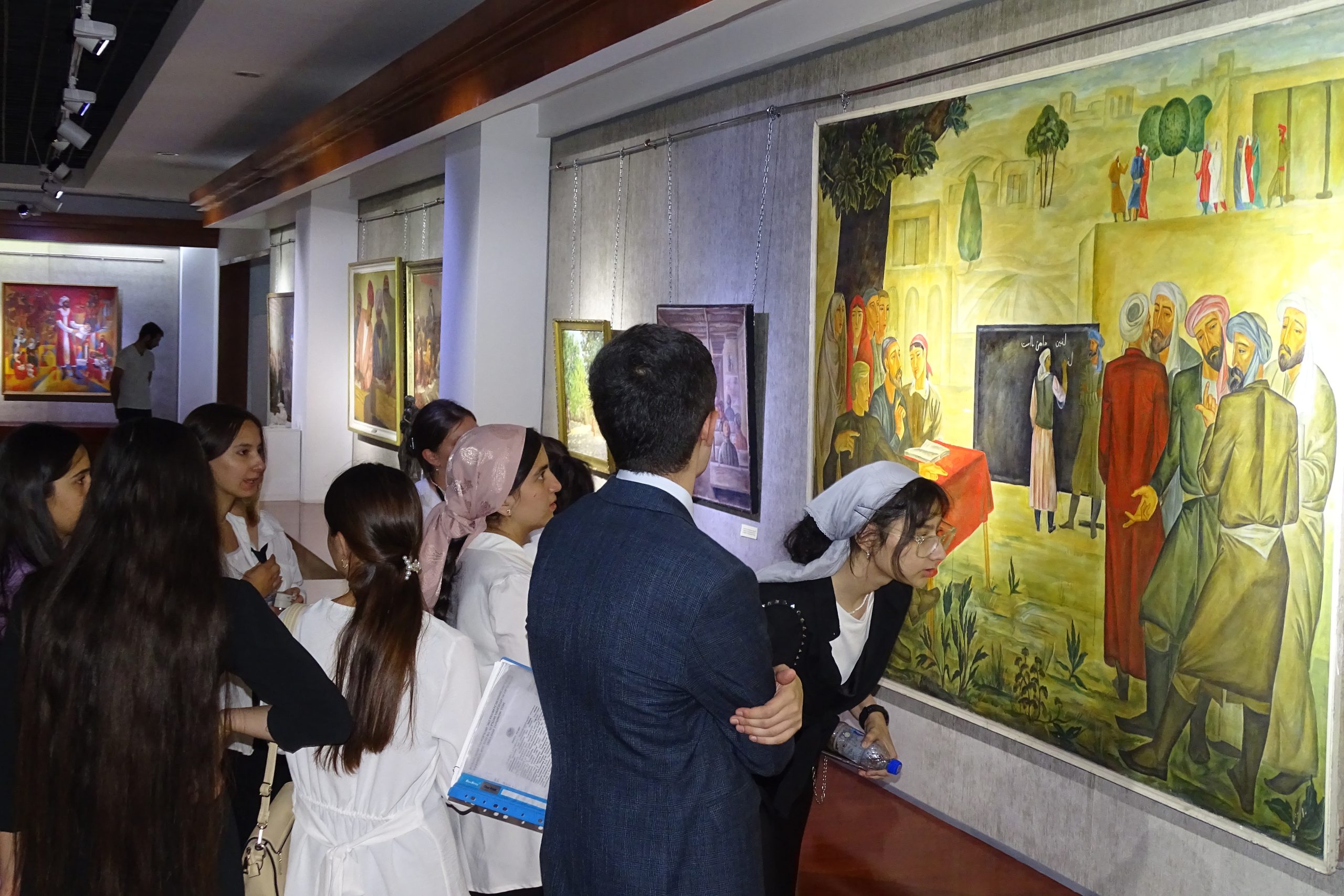 Вобаста ба ҳамин сана, дар намоишӣ омоданамуда аз фонди Осорхонаи миллӣ 30 адад экспонатҳои нодир ба монанди мусаввараву нимпайкараҳои рассомон ва пайкарасозон аз қабили офаридаҳои рассомон А. Ашӯров “Симои Муаллим” (соли 1955), Буртсев Е. Г. “Мактаби кўњна (соли 1934), Ҳабибулоев З. Н. “Гурӯҳи шоирон” (соли 1981), Лисиков И. Л. “Симои муаллимаи хизматнишондодаи ҶШС-и Тоҷикистон Маҳмудова М.” (соли 1977), Бенков П.П. “Ба мактаб” (соли 1946), Богдасаров Р. “Симои Абдураҳмони Ҷомӣ” (соли 1964), Боборикин В. М. “Маҳви бесаводӣ” (соли 1957), Хушвахтов Х. Д. “Имтиҳон” (соли 1962), Камелин А. Н. “Симои А. Дониш (соли 1964), Одинаев Б. “Ашъори шоирони бузург” (соли 1989), Жумағозин К. “Донишҷӯ” (соли 1979), Гунниус А. Ф. “Дӯстон” (соли 1956) ва дигар экспонатҳо пешниҳоди тамошобинон шудаанд.