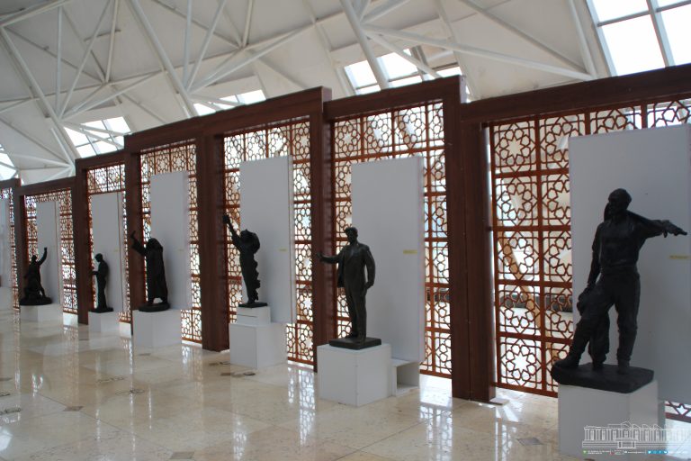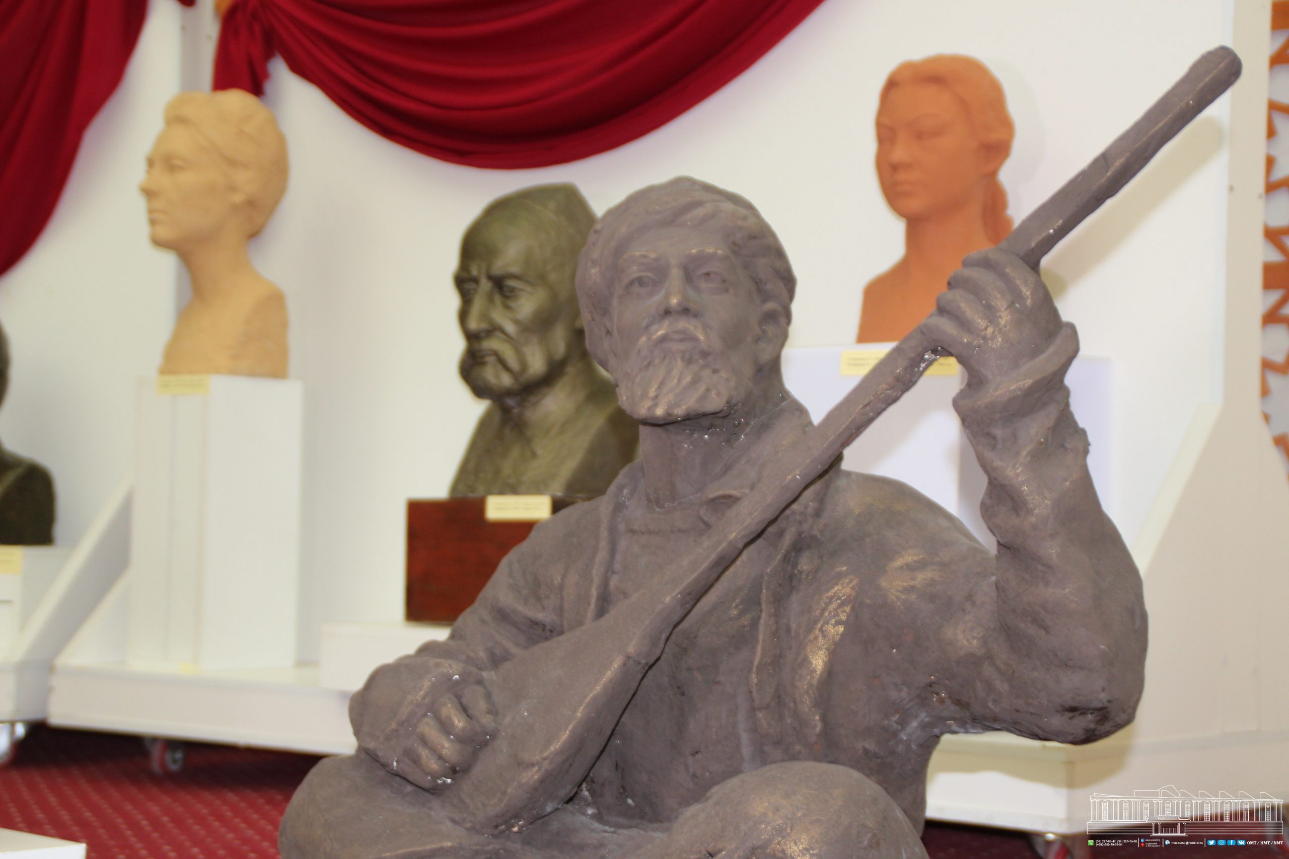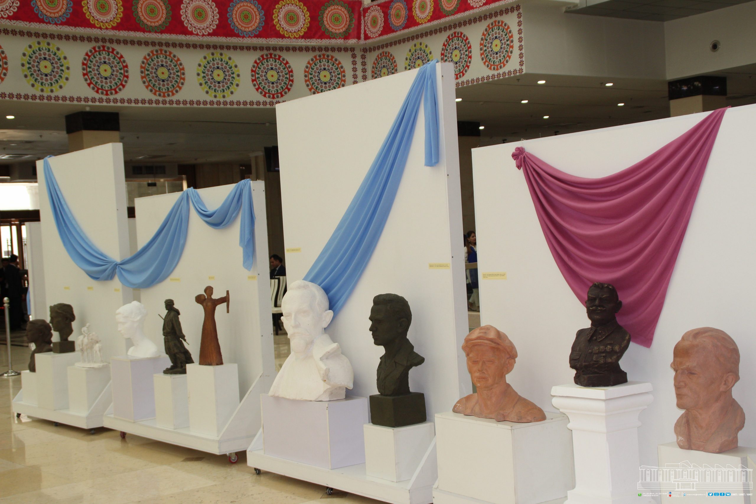 Дар намоиш зиёда аз 60 адад пайкара ва нимпайкараҳои офаридањои Ҳакимов Н., Ахунов О. А., Закиров К.Ю., Одинаев В., Ғаниев А., Мухина В. И., Татаринова Е.А., Чередниченко Г.Г., Иванов И. Г., Жумагазин К., Иванова З.М. ва дигарон ба тамошо бароварда шудаанд.
