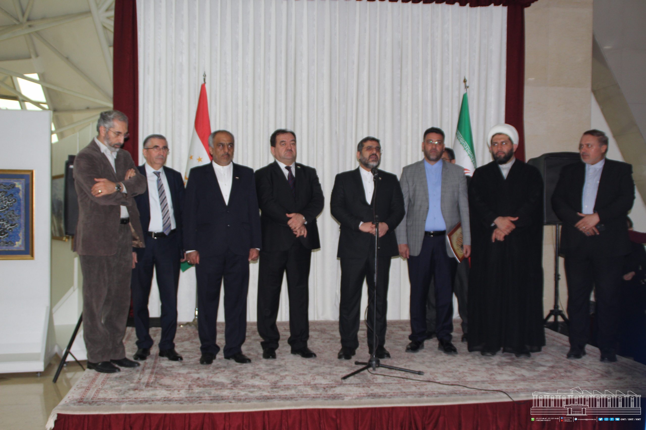 Дар ифтитоҳи намоиш Вазири фарҳанг ва иршоди исломии Ҷумҳурии Исломии Эрон Муҳаммадмеҳдӣ Исмоилӣ, муовини вазири фарҳанги Ҷумҳурии Тоҷикистон Давлат Сафар, директори Муассисаи давлатии “Осорхонаи миллӣ” Иброҳимзода Зафаршо, мудири кулли раёсати ҳамкориҳои фарҳангӣ ва умури эрониёни хориҷ аз кишвари Созмони фарҳанг ва иртиботи Ҷумҳурии Исломии Эрон Муҳаммад Алӣ Каёнӣ, намояндаи Маҷлиси Шӯрои исломии Ҷумҳурии Исломии Эрон Маҷид Насироӣ, Сафири Фавқулода ва Мухтори Ҷумҳурии Исломии Эрон дар Ҷумҳурии Тоҷикистон Муҳаммадтақии Собирӣ ва дигар аҳли илму фарҳанги ду кишвар иштирок намуданд.